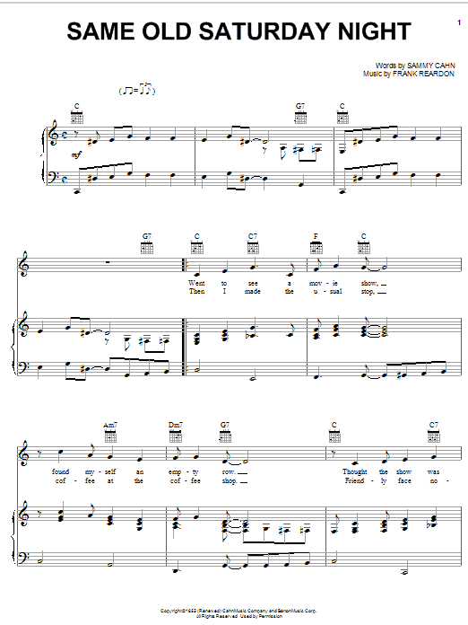 Download or print Frank Sinatra Same Old Saturday Night sheet music, chords and digital score arranged for Piano & Vocal. This Jazz score includes 5 page(s).
