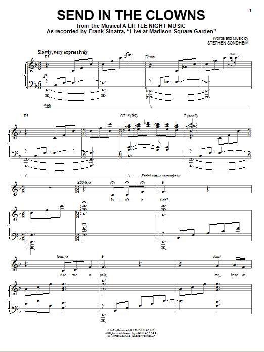 Download or print Frank Sinatra Send In The Clowns sheet music, chords and digital score arranged for Piano & Vocal. This Broadway score includes 6 page(s).