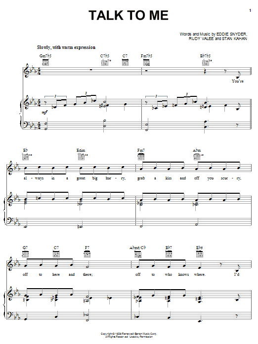 Download or print Frank Sinatra Talk To Me sheet music, chords and digital score arranged for Easy Piano. This Jazz score includes 2 page(s).