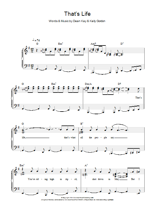 Download or print Frank Sinatra That's Life sheet music, chords and digital score arranged for Piano & Vocal. This Jazz score includes 4 page(s).