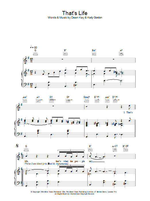 Download or print Frank Sinatra That's Life sheet music, chords and digital score arranged for Lead Sheet / Fake Book. This Jazz score includes 1 page(s).