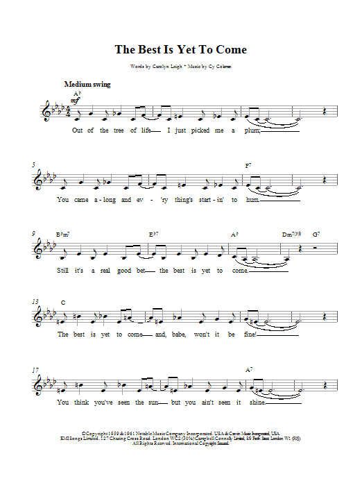 Quick facts The Best Is Yet To Come about digital sheet music