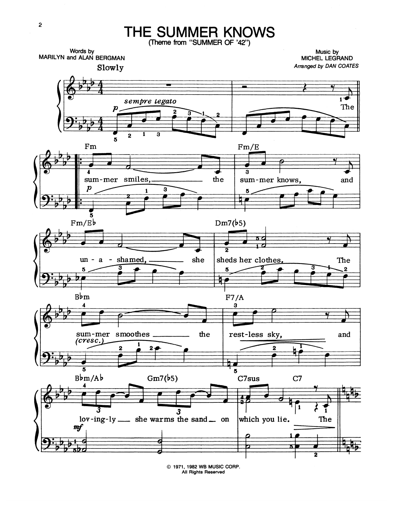 Download or print Frank Sinatra The Summer Knows sheet music, chords and digital score arranged for Easy Piano. This Jazz score includes 3 page(s).
