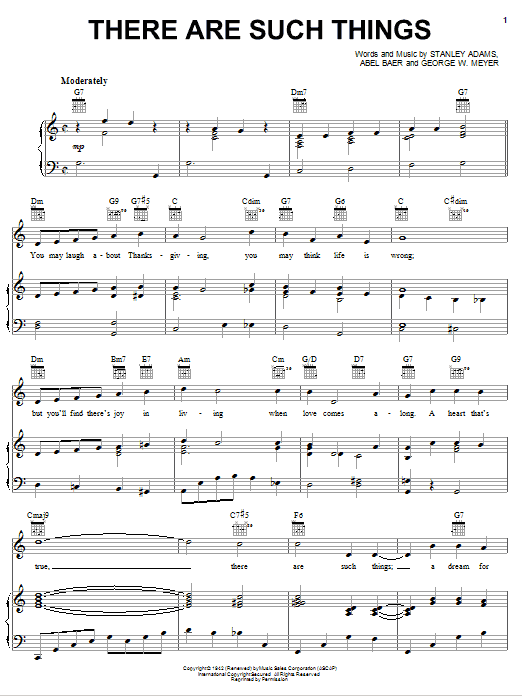 Download or print Frank Sinatra There Are Such Things sheet music, chords and digital score arranged for Piano, Vocal & Guitar Chords (Right-Hand Melody). This Jazz score includes 3 page(s).