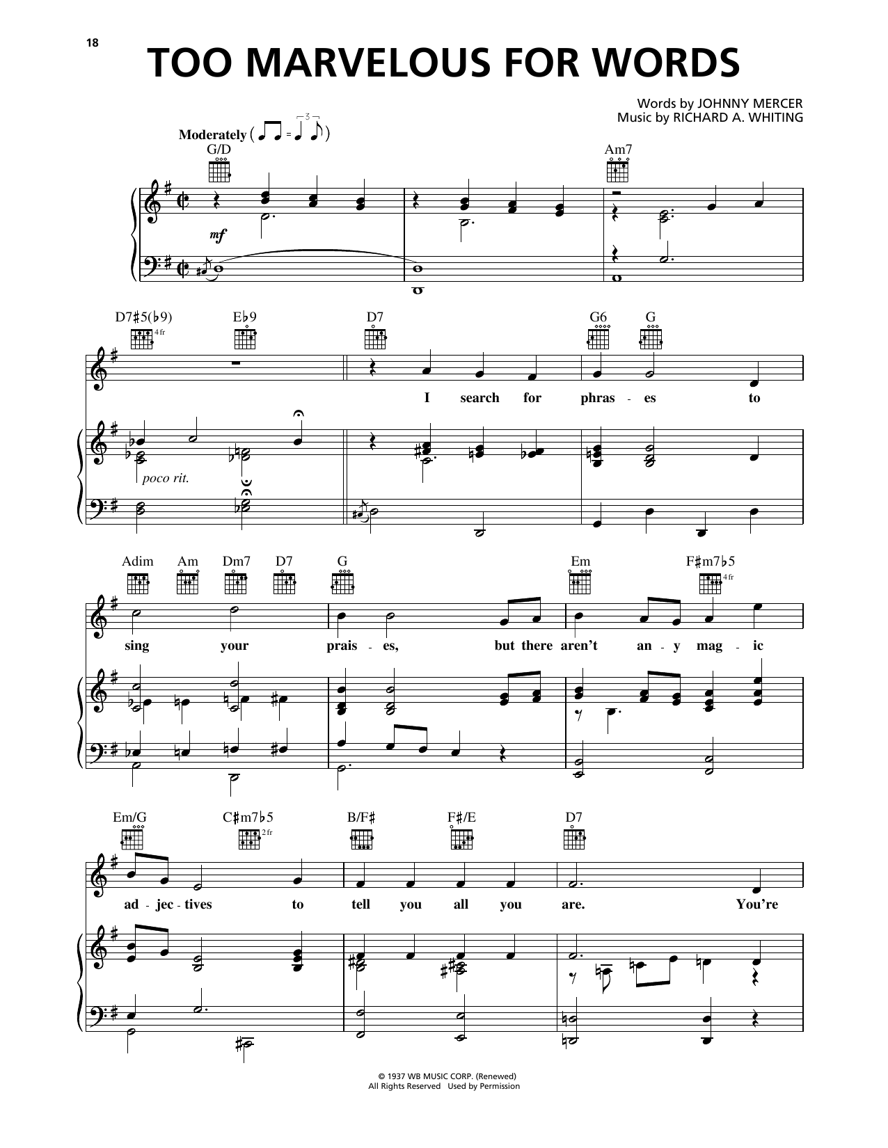 Quick facts Too Marvelous For Words about digital sheet music