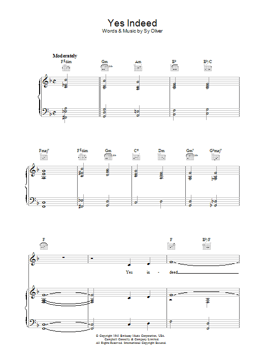 Download or print Frank Sinatra Yes Indeed (A Jive Spiritual) sheet music, chords and digital score arranged for Piano, Vocal & Guitar Chords. This Jazz score includes 3 page(s).