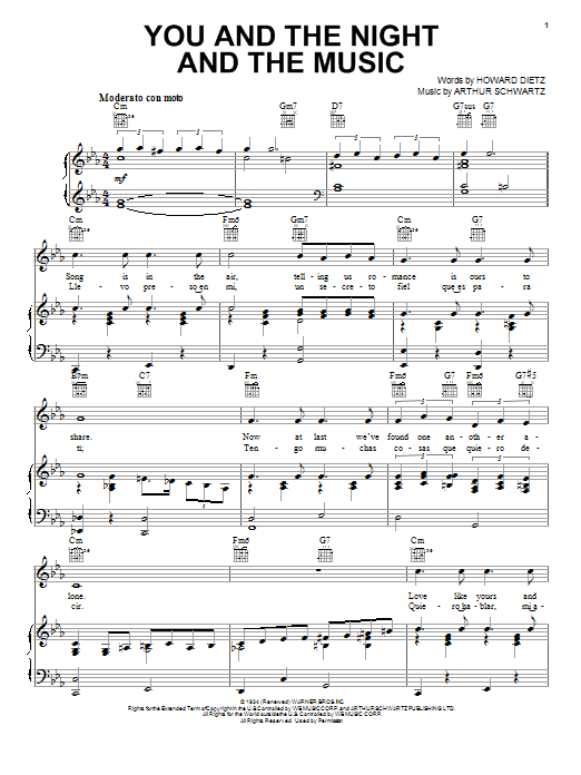 Download or print Frank Sinatra You And The Night And The Music sheet music, chords and digital score arranged for Piano, Vocal & Guitar Chords (Right-Hand Melody). This Pop score includes 4 page(s).
