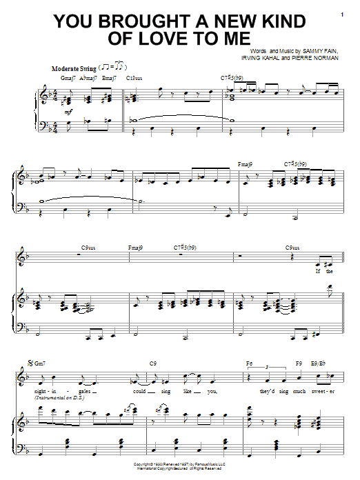 Quick facts You Brought A New Kind Of Love To Me about digital sheet music