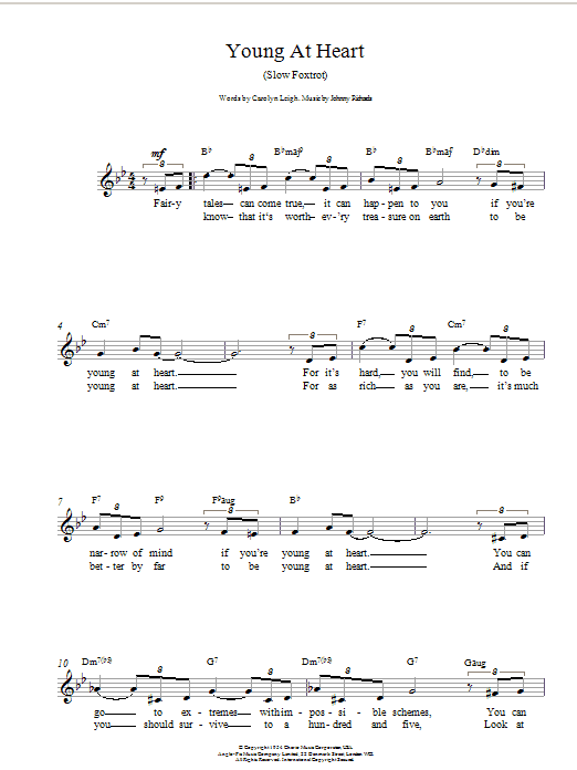Download or print Frank Sinatra Young At Heart sheet music, chords and digital score arranged for Piano & Vocal. This Jazz score includes 5 page(s).