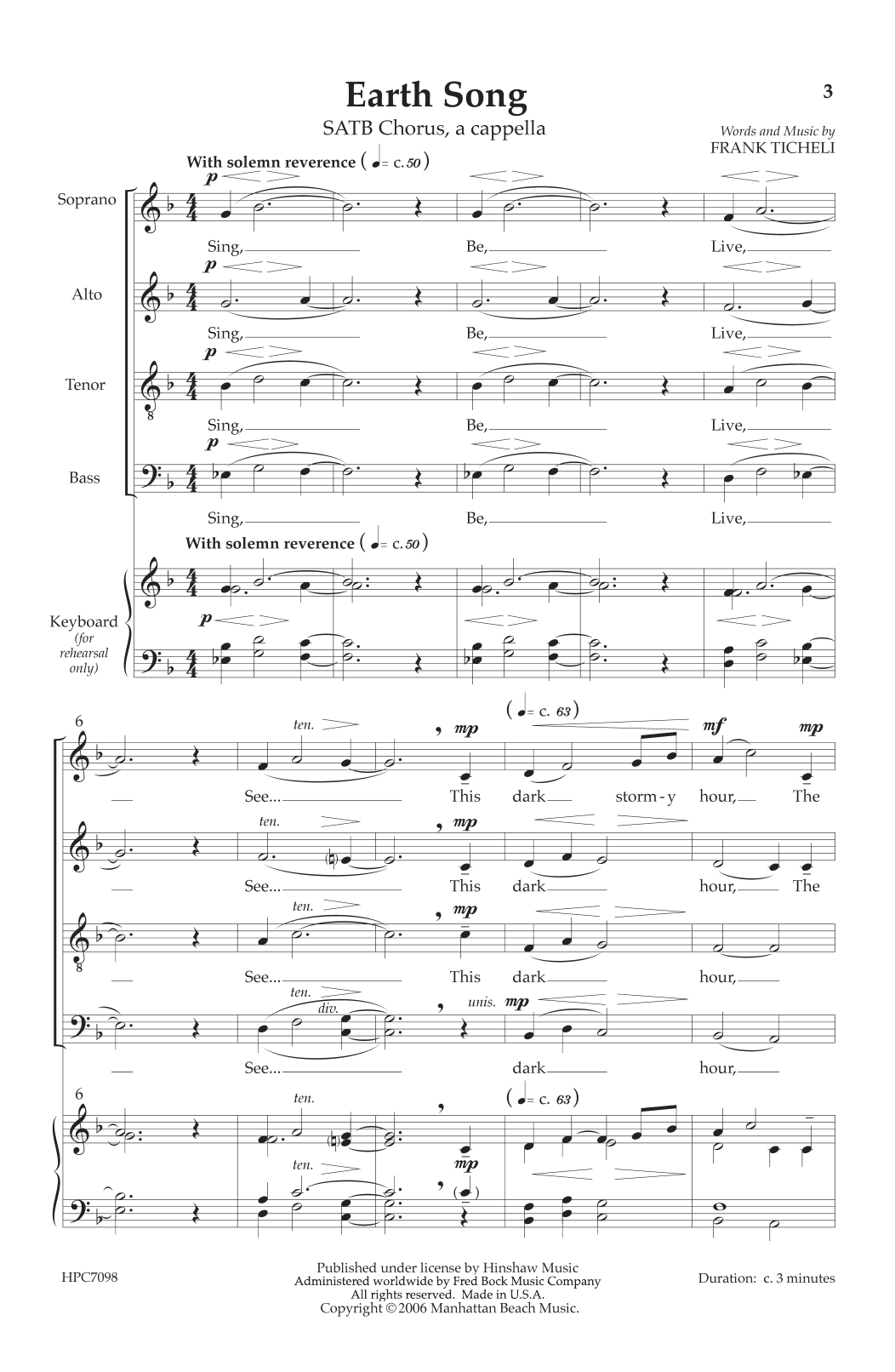 Download or print Frank Ticheli Earth Song sheet music, chords and digital score arranged for SSAA Choir. This Concert score includes 7 page(s).