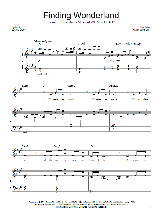 Download or print Frank Wildhorn Finding Wonderland sheet music, chords and digital score arranged for Piano, Vocal & Guitar Chords (Right-Hand Melody). This Musical/Show score includes 7 page(s).
