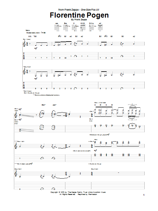 Download or print Frank Zappa Florentine Pogen sheet music, chords and digital score arranged for Guitar Tab. This Pop score includes 22 page(s).