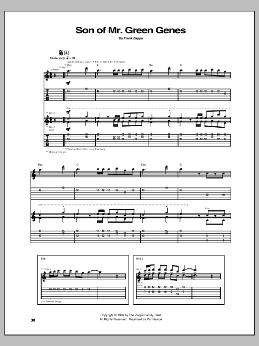 Download or print Frank Zappa Son Of Mr. Green Genes sheet music, chords and digital score arranged for Guitar Tab. This Pop score includes 13 page(s).