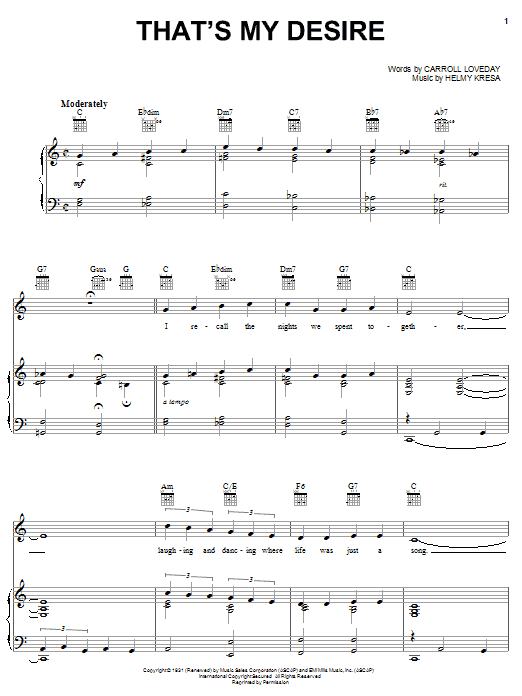 Download or print Frankie Laine That's My Desire sheet music, chords and digital score arranged for Piano, Vocal & Guitar Chords (Right-Hand Melody). This Pop score includes 4 page(s).