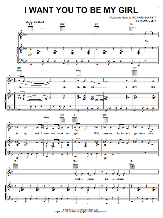 Download or print Frankie Lymon & The Teenagers I Want You To Be My Girl sheet music, chords and digital score arranged for Lead Sheet / Fake Book. This Pop score includes 1 page(s).