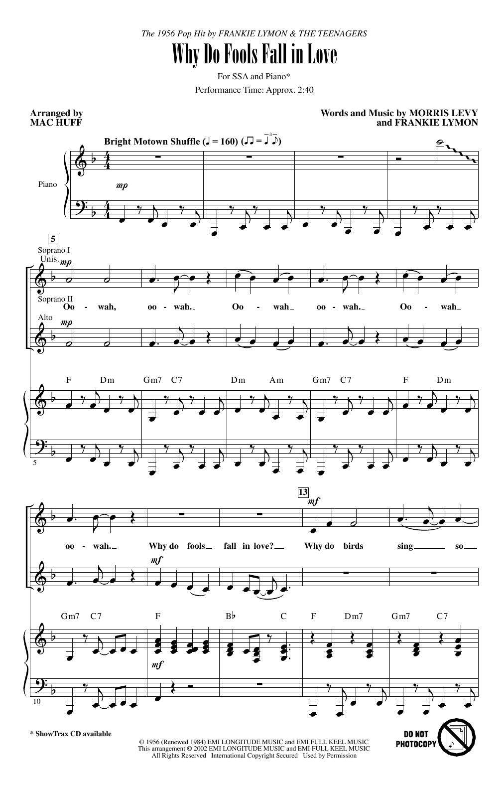 Download or print Frankie Lymon & The Teenagers Why Do Fools Fall In Love (arr. Mac Huff) sheet music, chords and digital score arranged for SSA Choir. This Pop score includes 7 page(s).