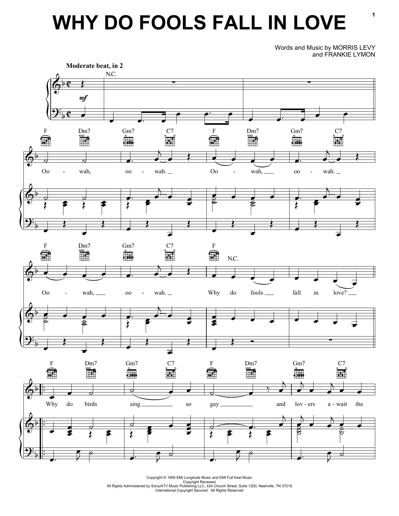 Download or print Frankie Lymon & The Teenagers Why Do Fools Fall In Love sheet music, chords and digital score arranged for Lead Sheet / Fake Book. This Oldies score includes 3 page(s).