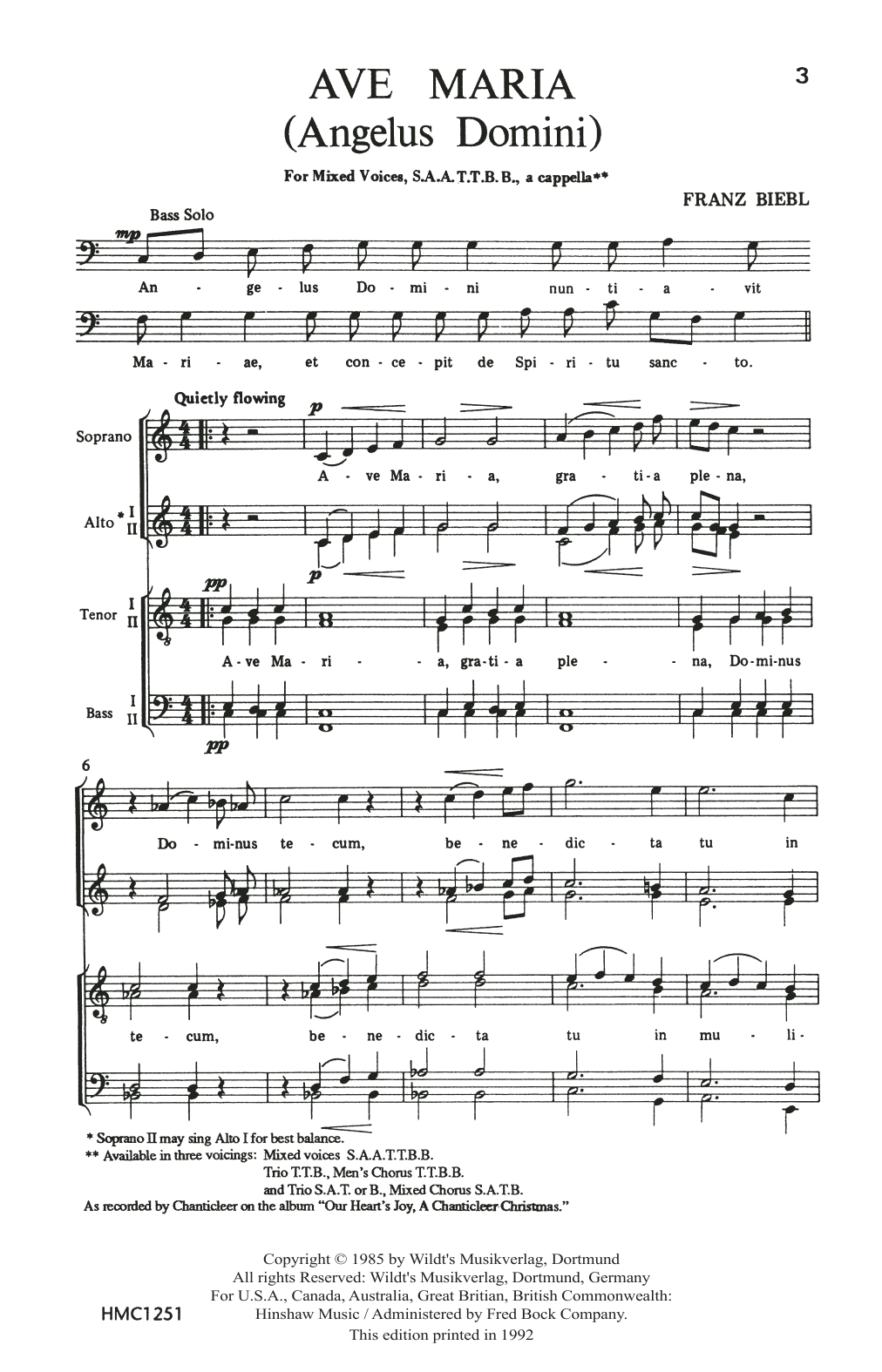 Download or print Franz Biebl Ave Maria sheet music, chords and digital score arranged for Choir. This Concert score includes 4 page(s).