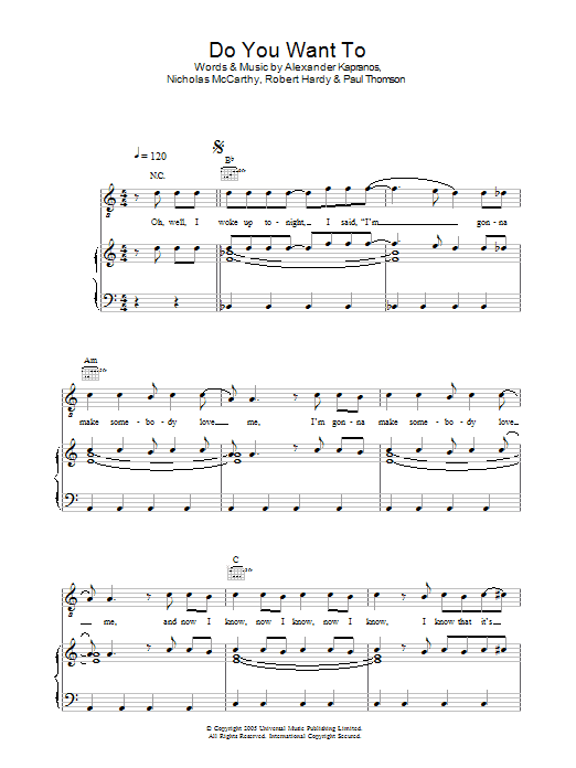 Download or print Franz Ferdinand Do You Want To sheet music, chords and digital score arranged for Guitar Chords/Lyrics. This Rock score includes 2 page(s).