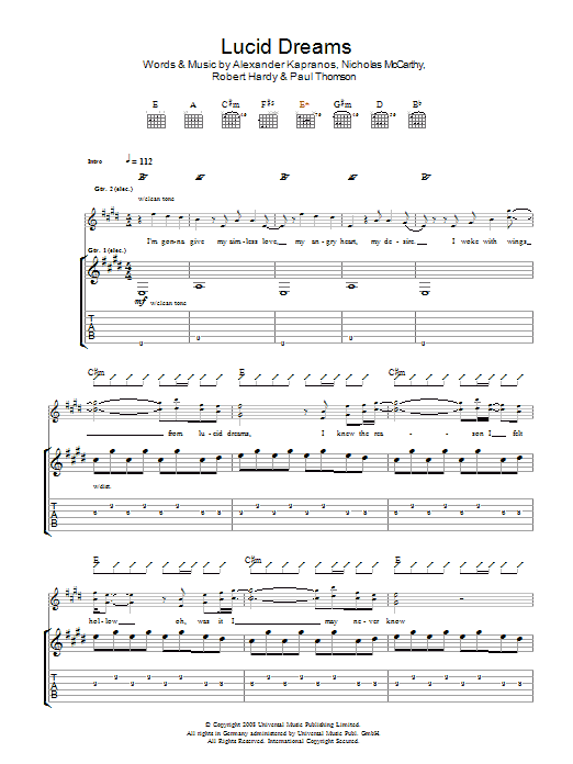 Download or print Franz Ferdinand Lucid Dreams sheet music, chords and digital score arranged for Guitar Tab. This Rock score includes 7 page(s).