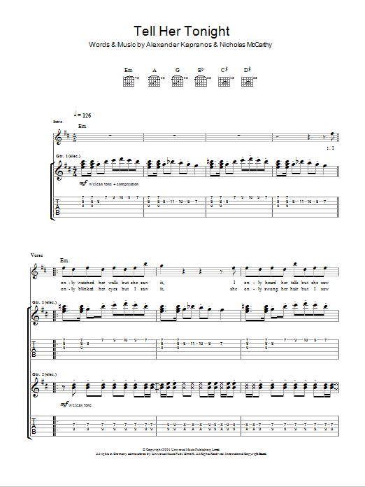Download or print Franz Ferdinand Tell Her Tonight sheet music, chords and digital score arranged for Guitar Chords/Lyrics. This Rock score includes 2 page(s).