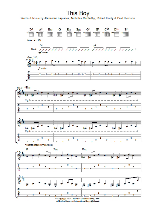 Download or print Franz Ferdinand This Boy sheet music, chords and digital score arranged for Guitar Tab. This Rock score includes 5 page(s).