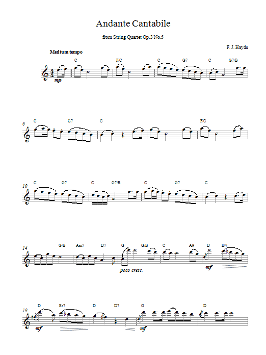 Download or print Franz Joseph Haydn Andante sheet music, chords and digital score arranged for Lead Sheet / Fake Book. This Classical score includes 2 page(s).
