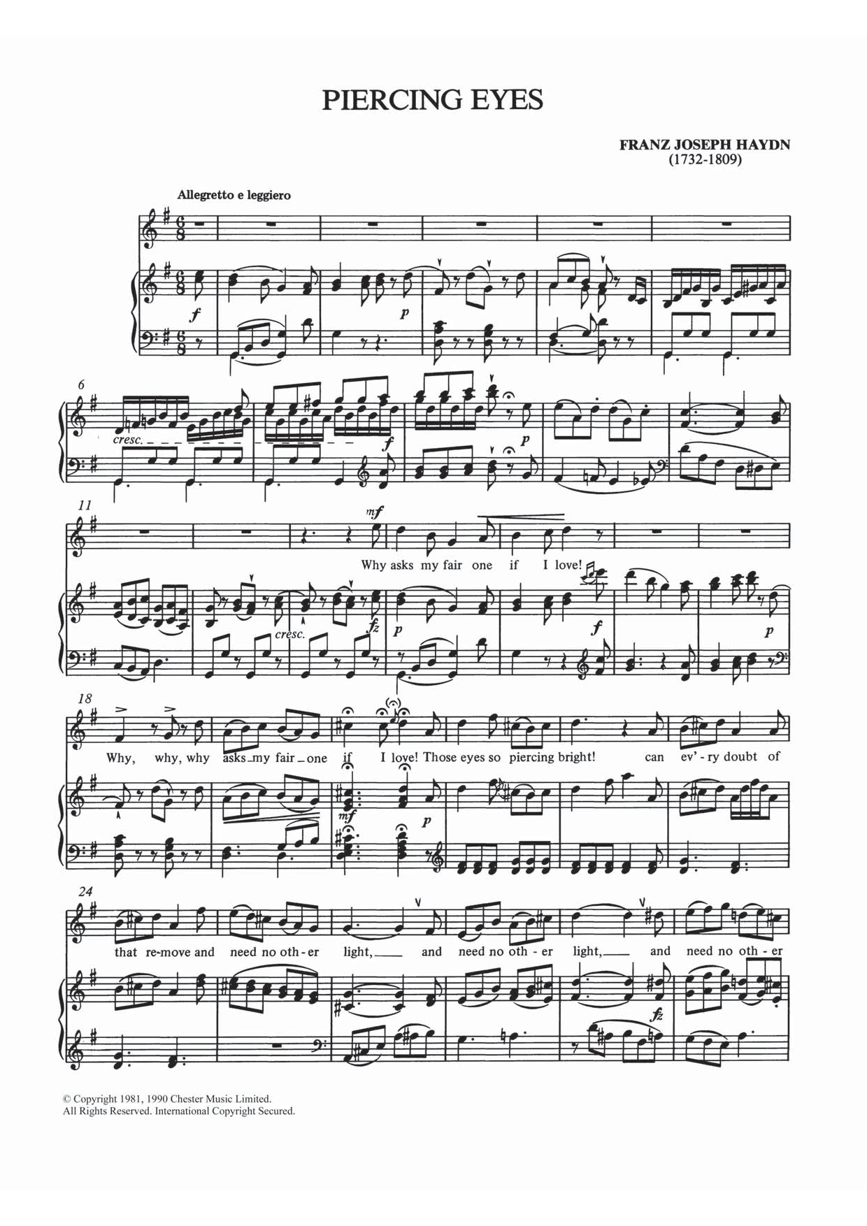Download or print Franz Joseph Haydn Piercing Eyes sheet music, chords and digital score arranged for Piano & Vocal. This Classical score includes 2 page(s).