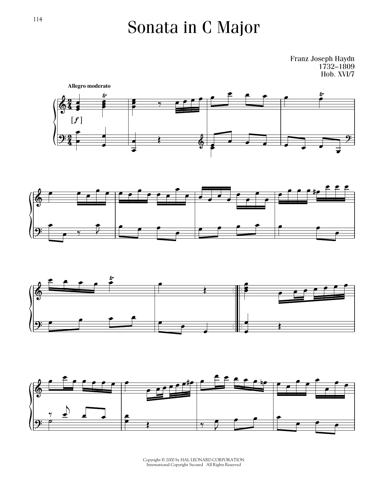 Download or print Franz Joseph Haydn Sonata No. 2 In C Major sheet music, chords and digital score arranged for Piano Solo. This Classical score includes 6 page(s).