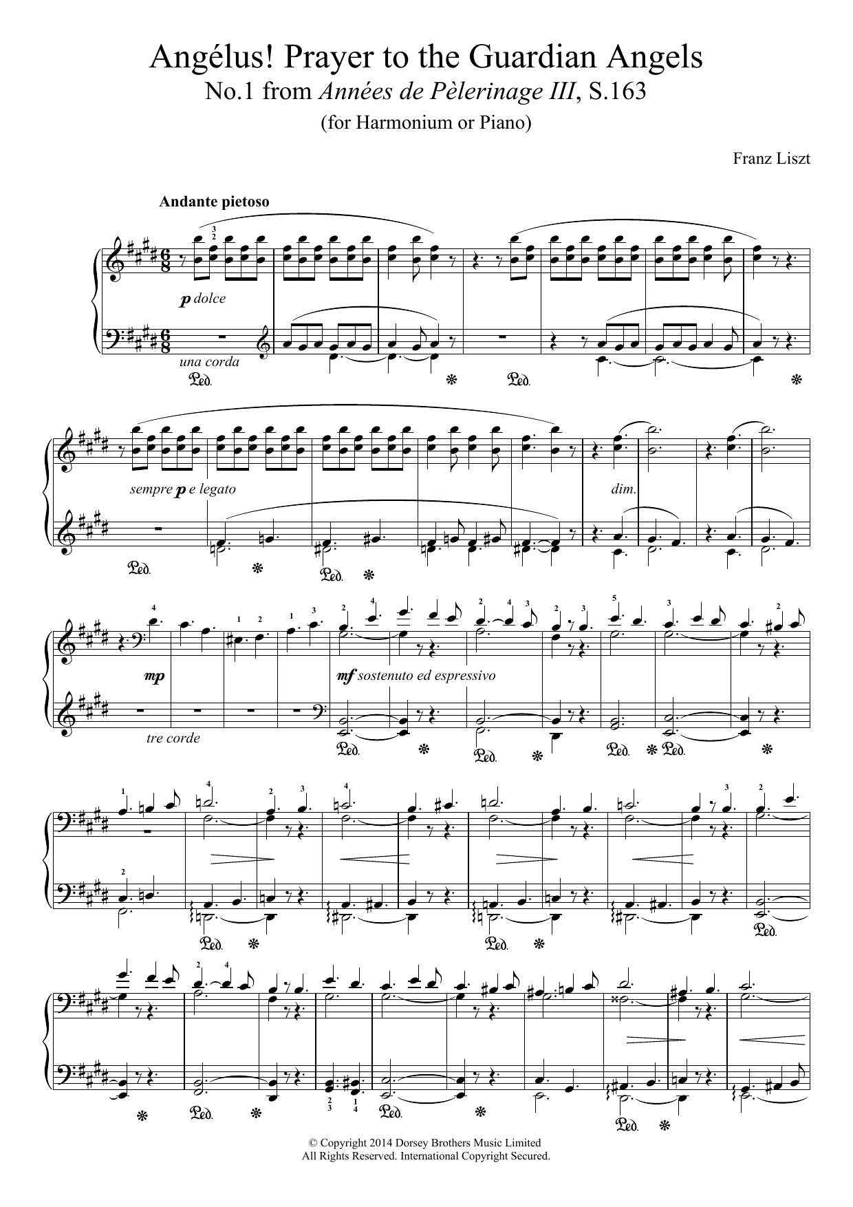 Download or print Franz Liszt Annees De Pelerinage III, No.1: Angelus! Prayer To The Guardian Angels sheet music, chords and digital score arranged for Piano Solo. This Classical score includes 5 page(s).