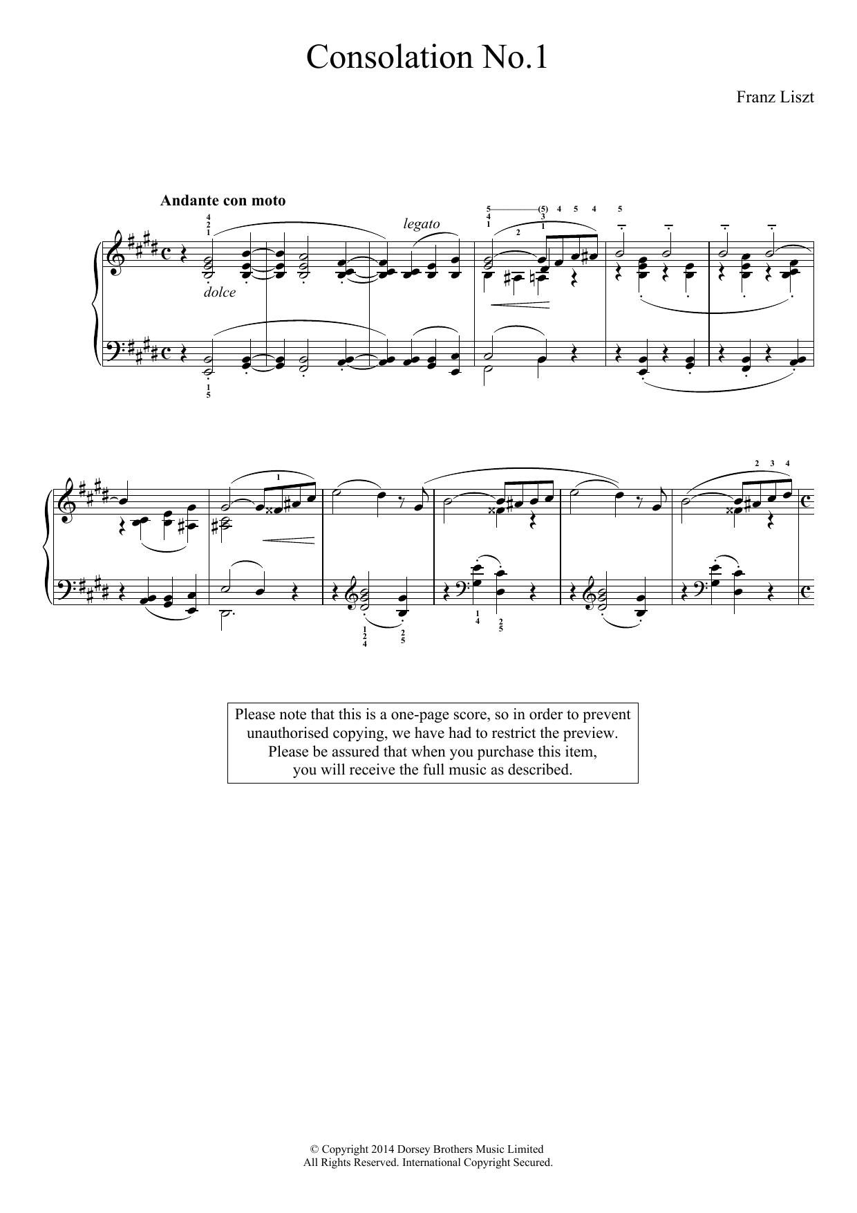 Quick facts Consolation No.1 about digital sheet music