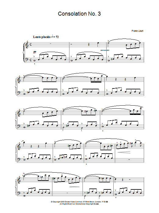 Download or print Franz Liszt Consolation No. 3 sheet music, chords and digital score arranged for Piano Solo. This Classical score includes 4 page(s).