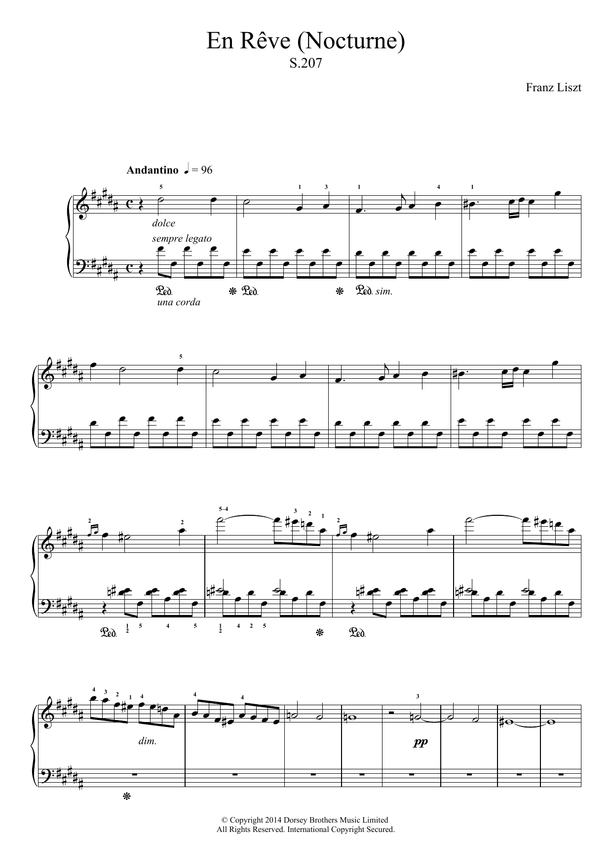 Download or print Franz Liszt En Reve (Nocturne) sheet music, chords and digital score arranged for Piano Solo. This Classical score includes 2 page(s).
