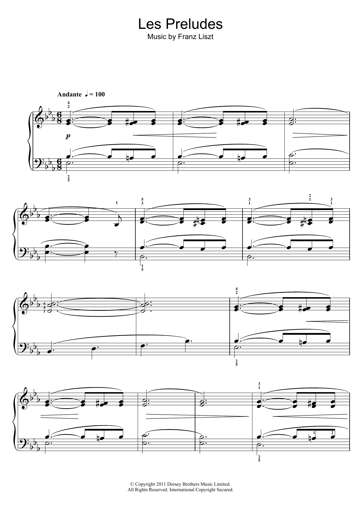 Download or print Franz Liszt Les Preludes sheet music, chords and digital score arranged for Piano Solo. This Classical score includes 2 page(s).