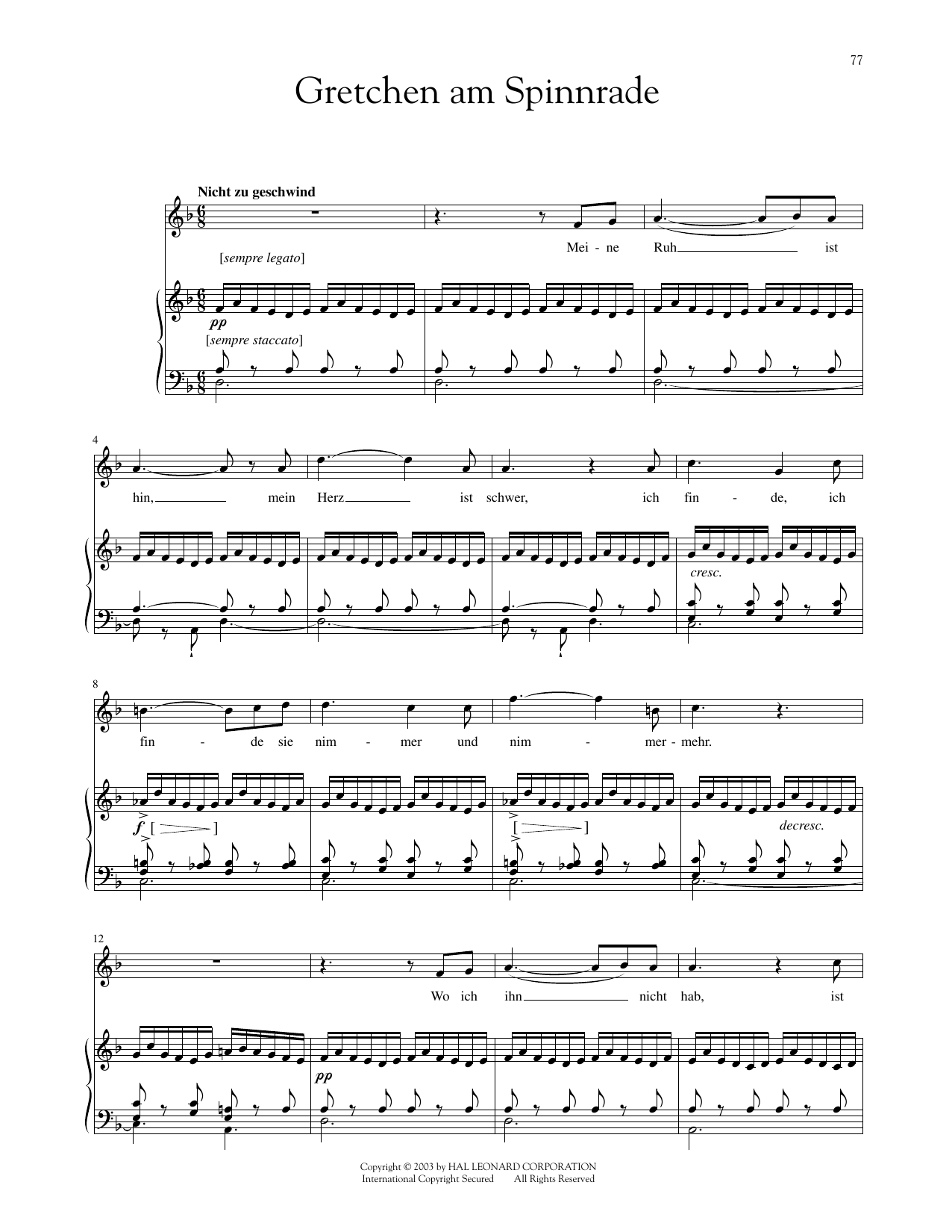 Download or print Franz Schubert Gretchen At The Spinning Wheel (Gretchen Am Spinnrade) (arr. Richard Walters) sheet music, chords and digital score arranged for Piano & Vocal. This Classical score includes 9 page(s).