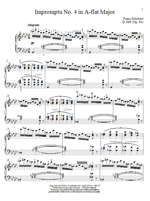 Download or print Franz Schubert Impromptu No. 4 In A-Flat Major sheet music, chords and digital score arranged for Piano Solo. This Classical score includes 11 page(s).