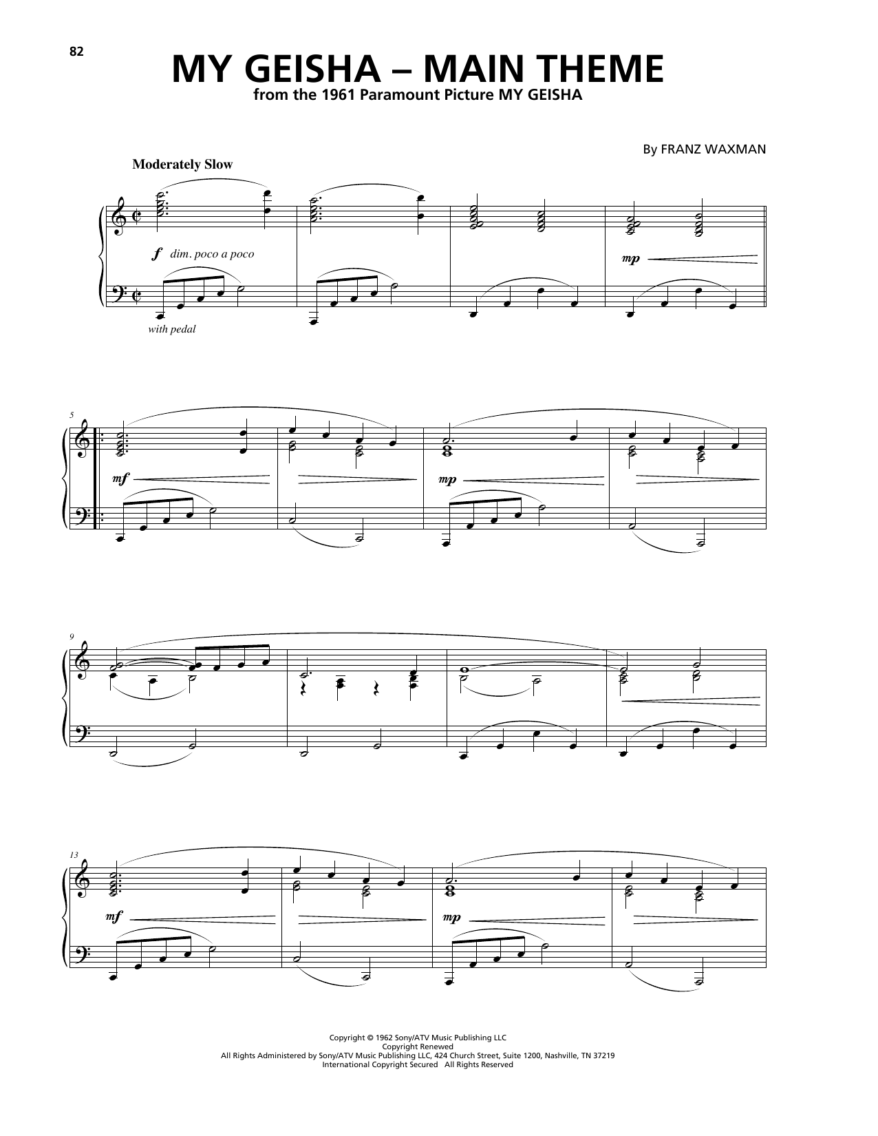 Download or print Franz Waxman My Geisha - Main Title sheet music, chords and digital score arranged for Piano Solo. This Pop score includes 2 page(s).