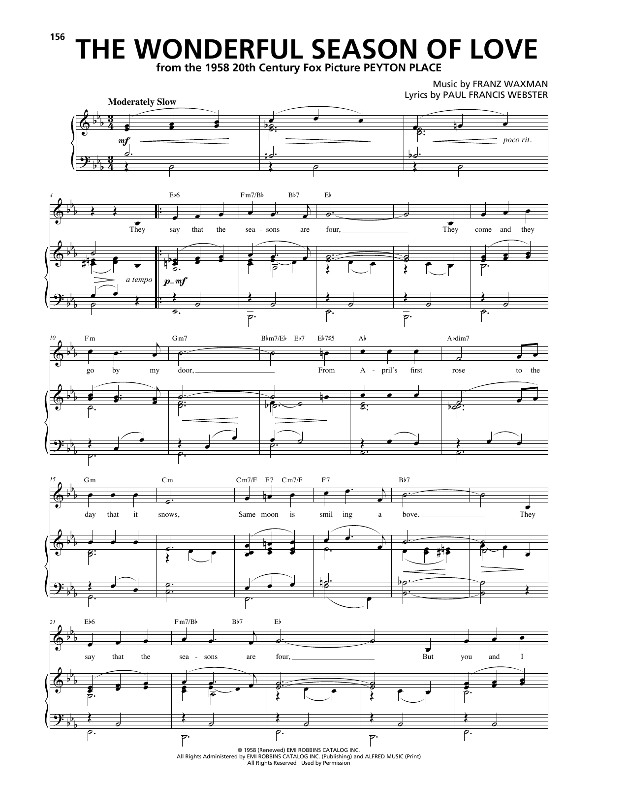 Download or print Franz Waxman The Wonderful Season Of Love sheet music, chords and digital score arranged for Piano, Vocal & Guitar Chords (Right-Hand Melody). This Pop score includes 2 page(s).