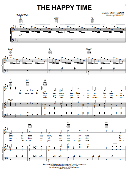 Download or print Kander & Ebb The Happy Time (from The Happy Time) sheet music, chords and digital score arranged for Piano, Vocal & Guitar Chords (Right-Hand Melody). This Musical/Show score includes 4 page(s).