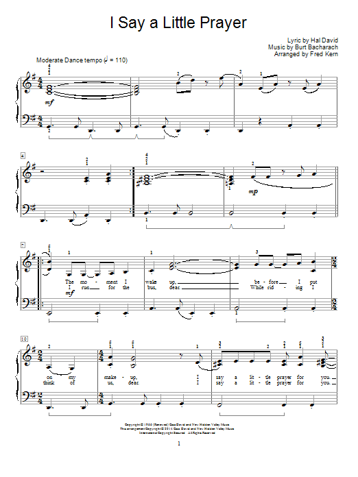 Download or print Fred Kern I Say A Little Prayer sheet music, chords and digital score arranged for Educational Piano. This Pop score includes 4 page(s).