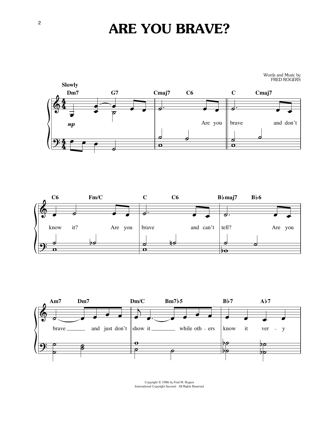Download or print Fred Rogers Are You Brave? sheet music, chords and digital score arranged for Easy Piano. This Children score includes 2 page(s).