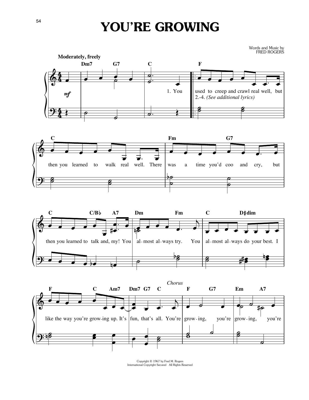 Download or print Fred Rogers You're Growing sheet music, chords and digital score arranged for Easy Piano. This Children score includes 2 page(s).