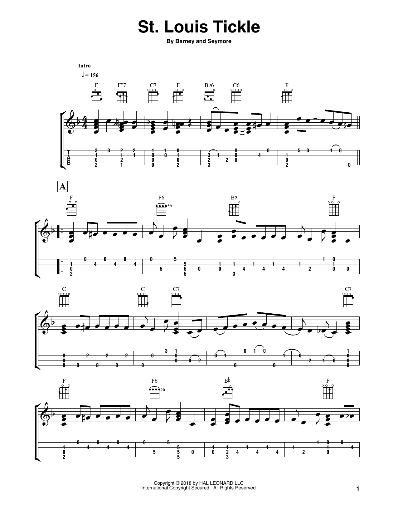 Download or print Barney and Seymore St. Louis Tickle (arr. Fred Sokolow) sheet music, chords and digital score arranged for Easy Ukulele Tab. This Jazz score includes 6 page(s).