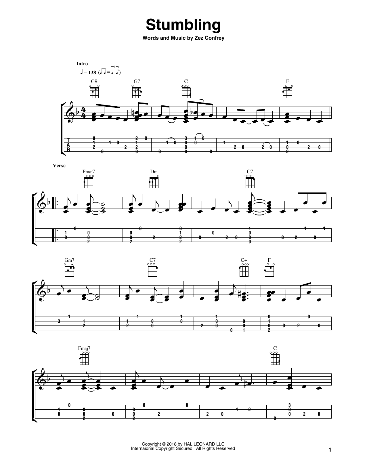 Download or print Zez Confrey Stumbling (arr. Fred Sokolow) sheet music, chords and digital score arranged for Easy Ukulele Tab. This Jazz score includes 3 page(s).