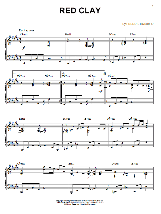 Download or print Freddie Hubbard Red Clay (arr. Brent Edstrom) sheet music, chords and digital score arranged for Piano Solo. This Jazz score includes 5 page(s).