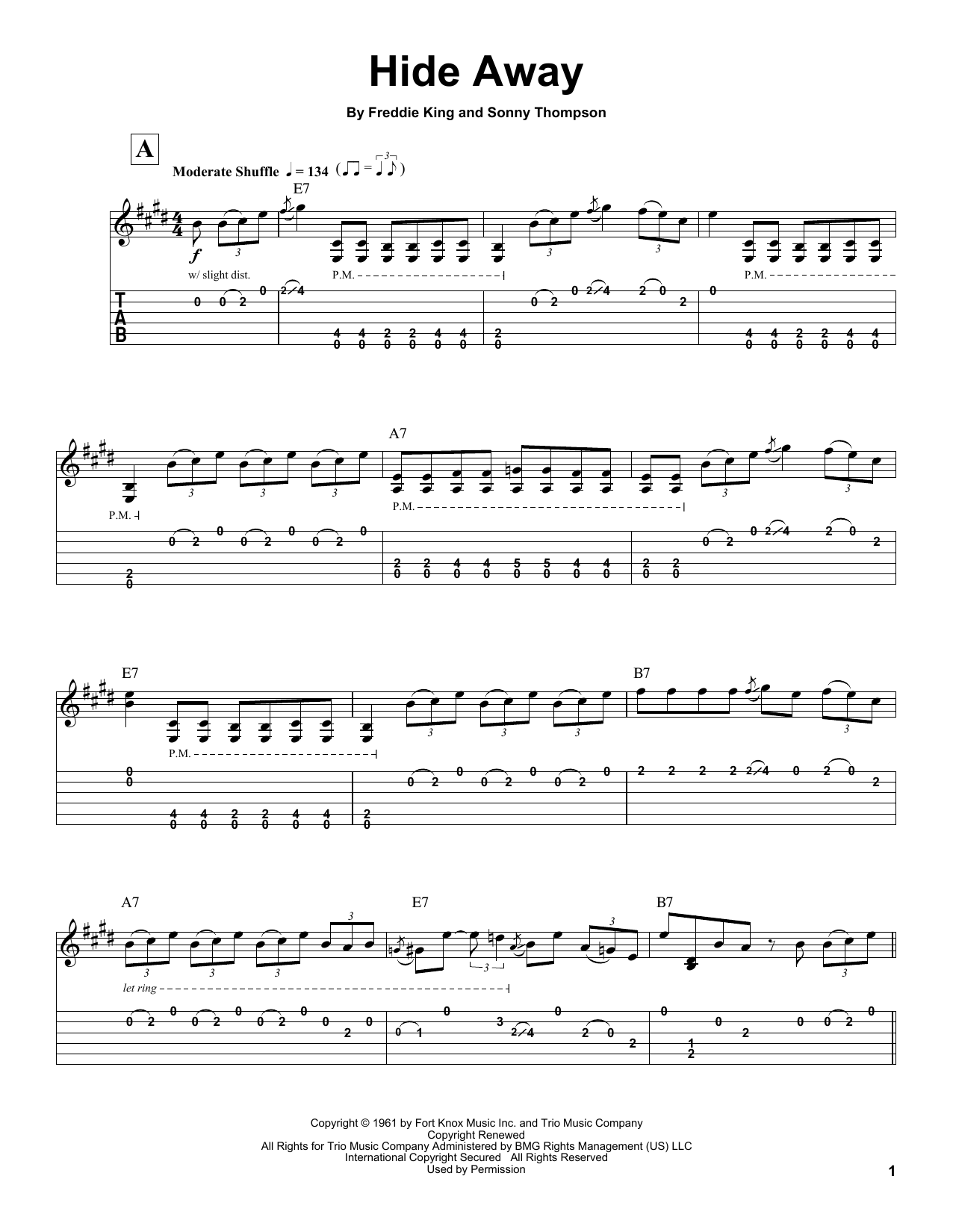 Download or print Freddie King Hide Away sheet music, chords and digital score arranged for Guitar Tab (Single Guitar). This Blues score includes 5 page(s).
