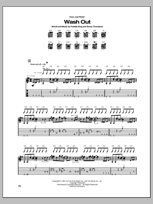 Download or print Freddie King Wash Out sheet music, chords and digital score arranged for Guitar Tab. This Pop score includes 4 page(s).
