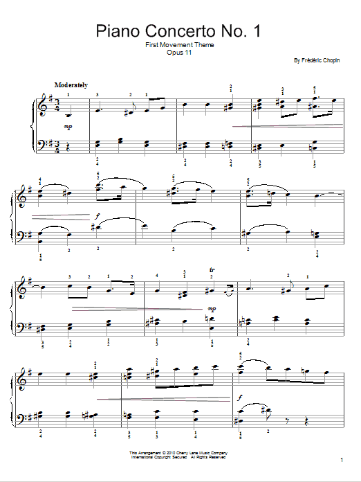Download or print Frederic Chopin Concerto In E Minor sheet music, chords and digital score arranged for Easy Piano. This Classical score includes 2 page(s).