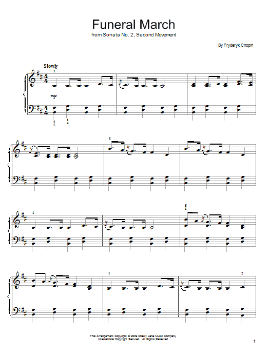 Download or print Frederic Chopin Funeral March sheet music, chords and digital score arranged for Easy Piano. This Classical score includes 2 page(s).