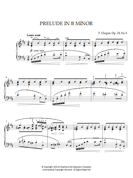 Download or print Frederic Chopin Prelude In B Minor, Op. 28, No. 6 sheet music, chords and digital score arranged for Piano Solo. This Classical score includes 2 page(s).